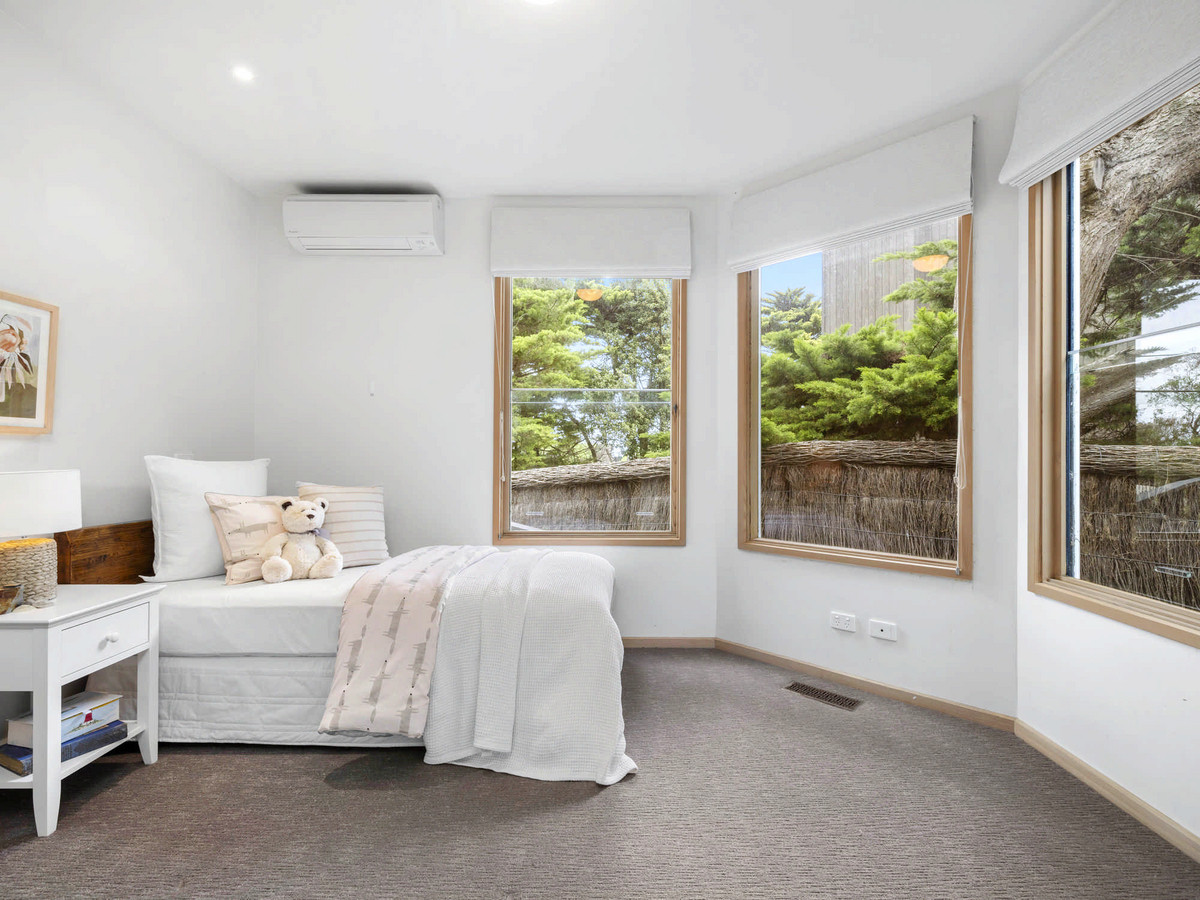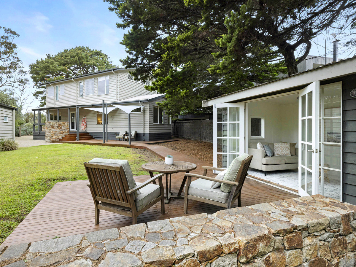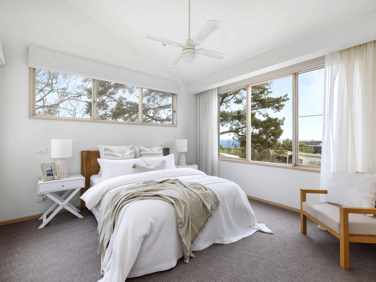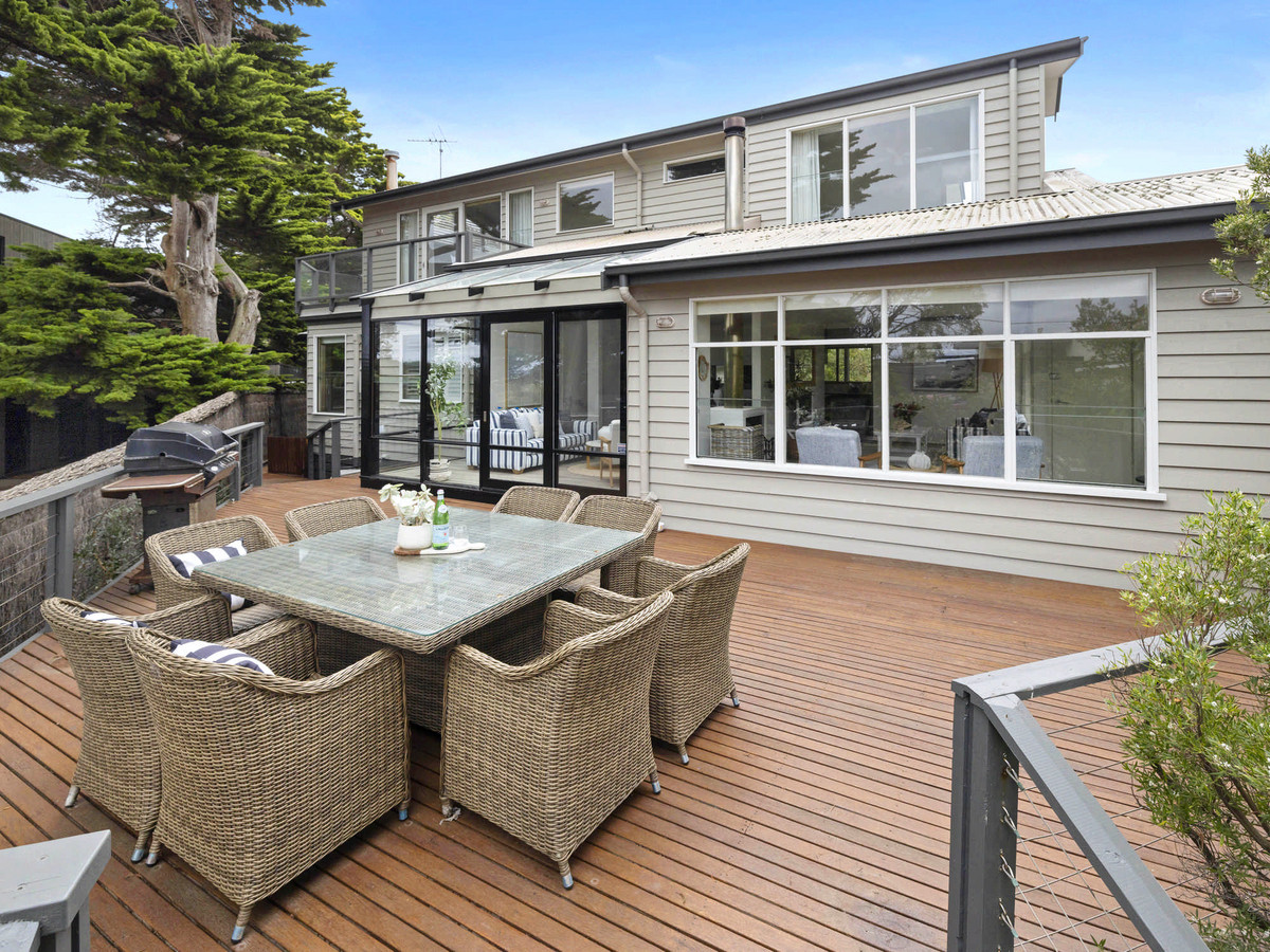 At the heart of this home is a stylish double-sided fireplace, serving as the centrepiece for the living, dining, and sitting areas. All seamlessly flowing to the beachside alfresco deck, offering the perfect spot to savour the last golden rays of summer sun as they set over the bay.