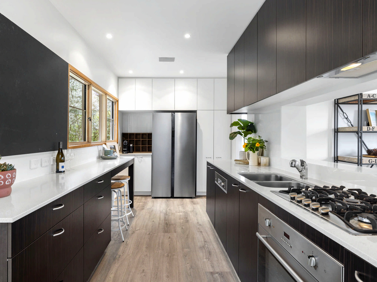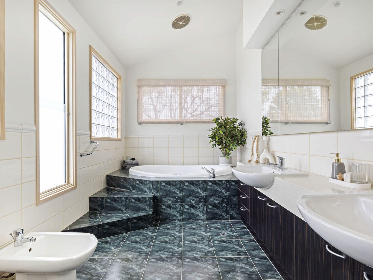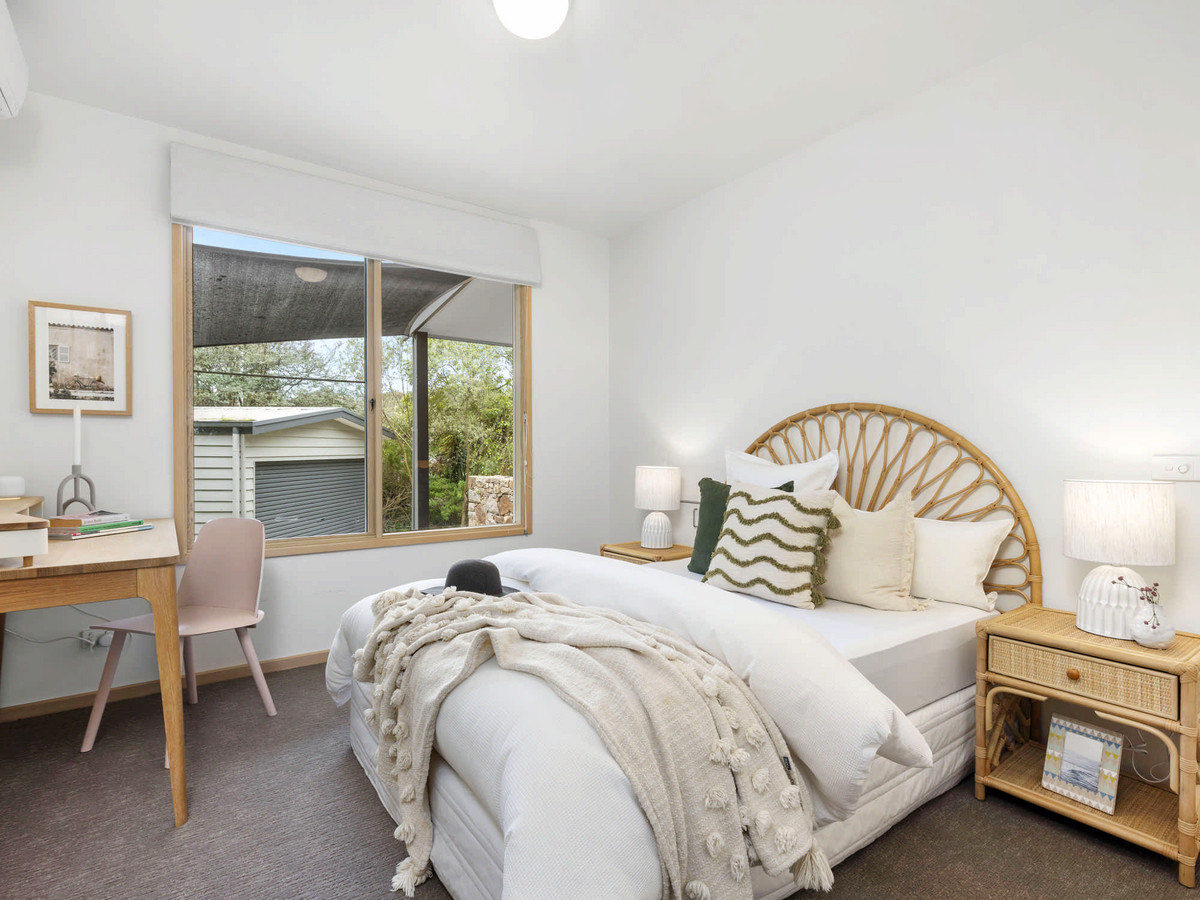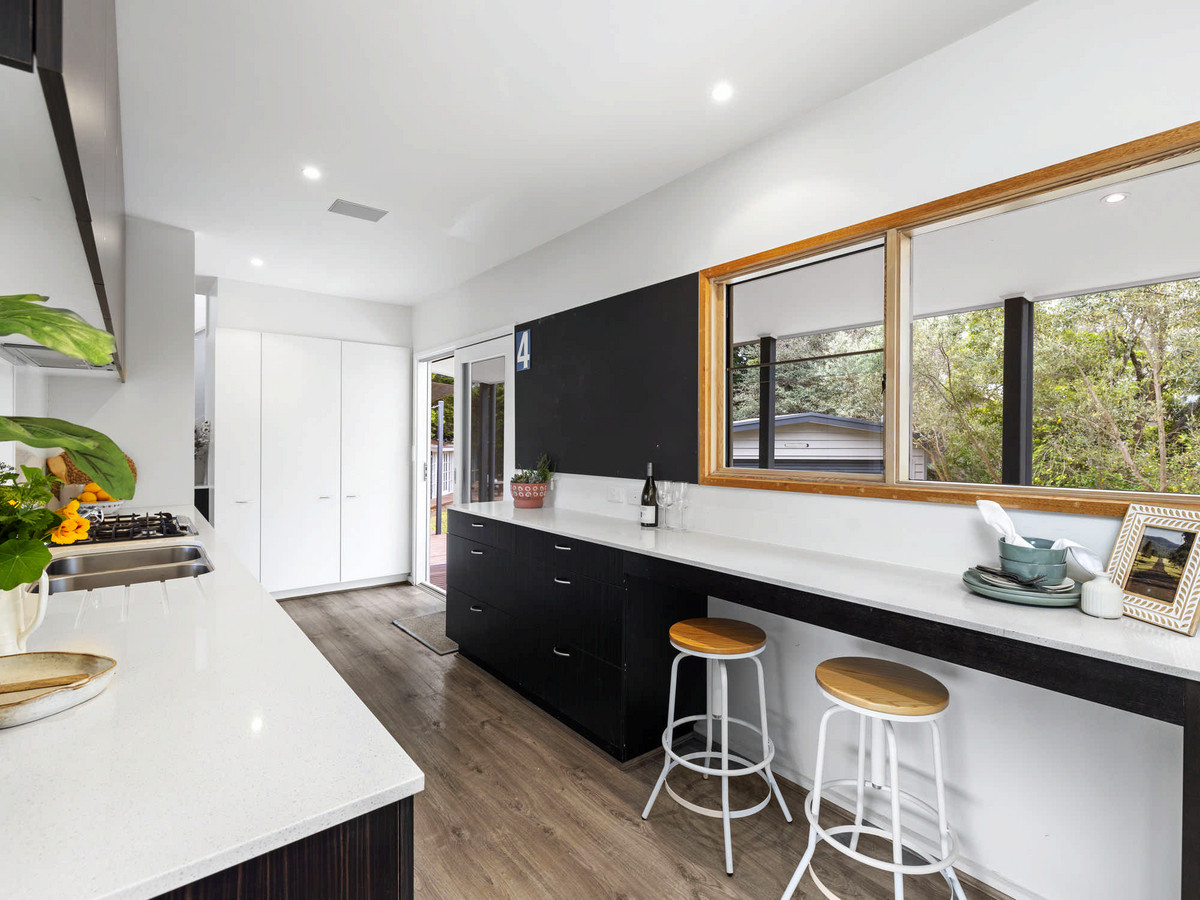 At the heart of this home is a stylish double-sided fireplace, serving as the centrepiece for the living, dining, and sitting areas. All seamlessly flowing to the beachside alfresco deck, offering the perfect spot to savour the last golden rays of summer sun as they set over the bay.