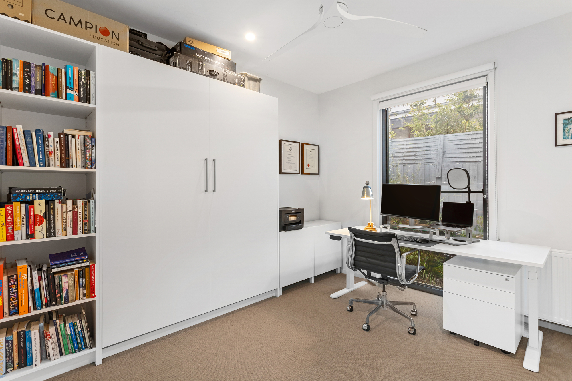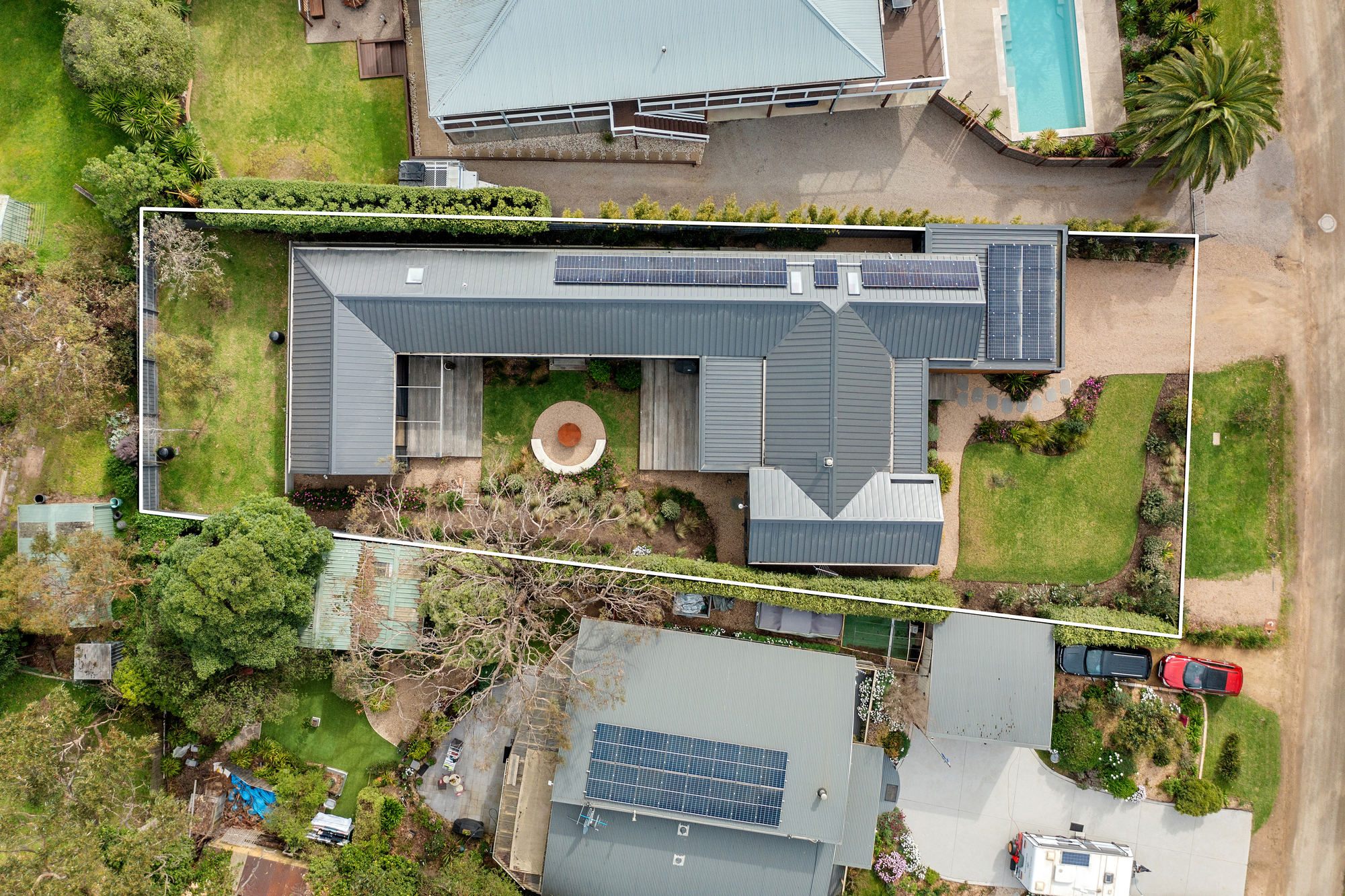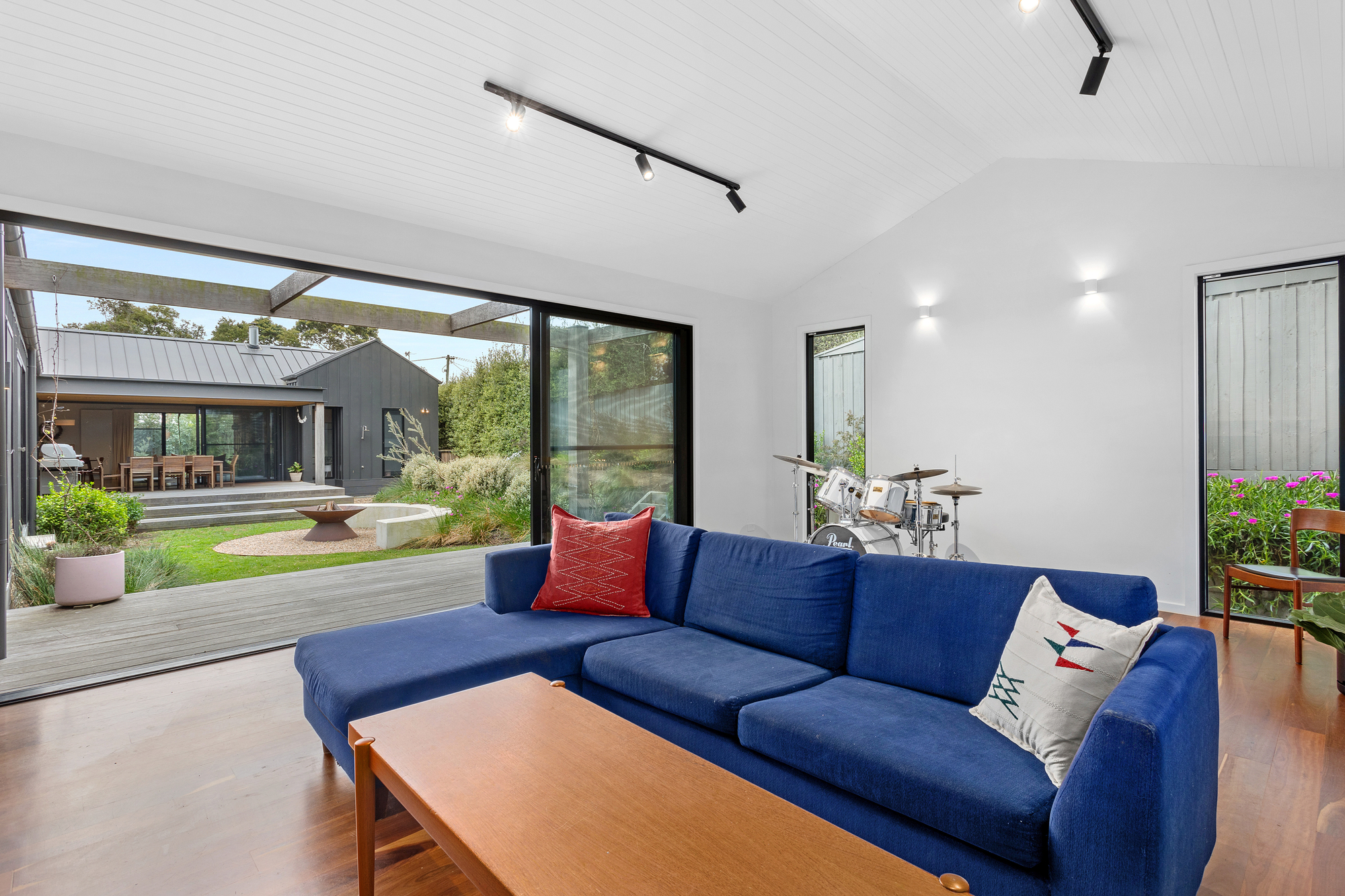 A secondary living area enhances the versatility of the floor plan, flanking three robed bedrooms, a study/fifth bedroom with a Murphy bed, and a designer bathroom with a separate powder room. The main bedroom sits within its own private wing, capturing northern light through expansive windows, complete with a walk-in robe and lavish ensuite. Additional features such as, a 10.8kW solar system, hydronic heating, and a double remote garage elevate this home’s appeal, all within walking distance to Somers Yacht Club, the beach, Somers Koala Reserve and local conveniences. A refined coastal sanctuary for those seeking turn-key brilliance or the perfect lock-and-leave holiday retreat.